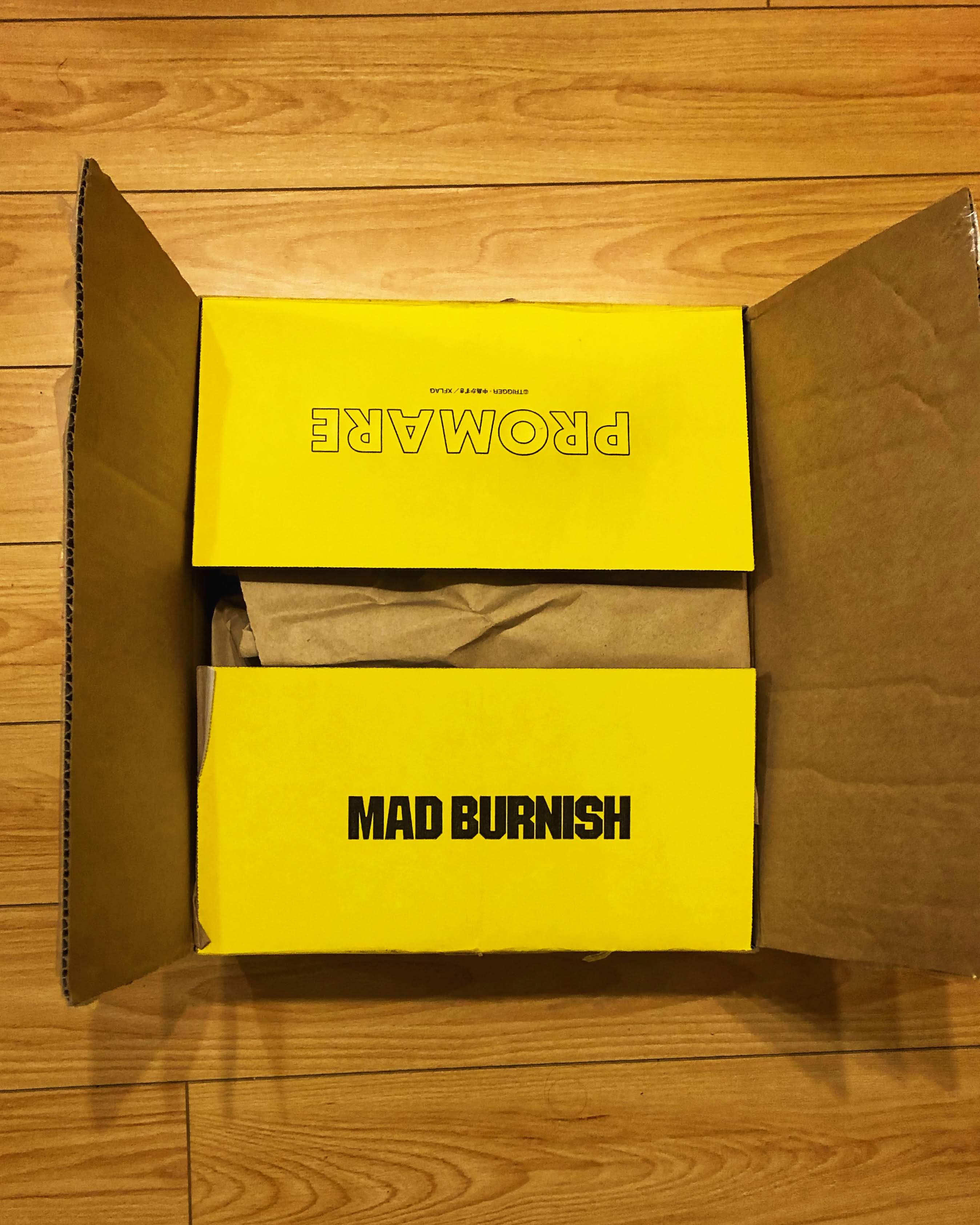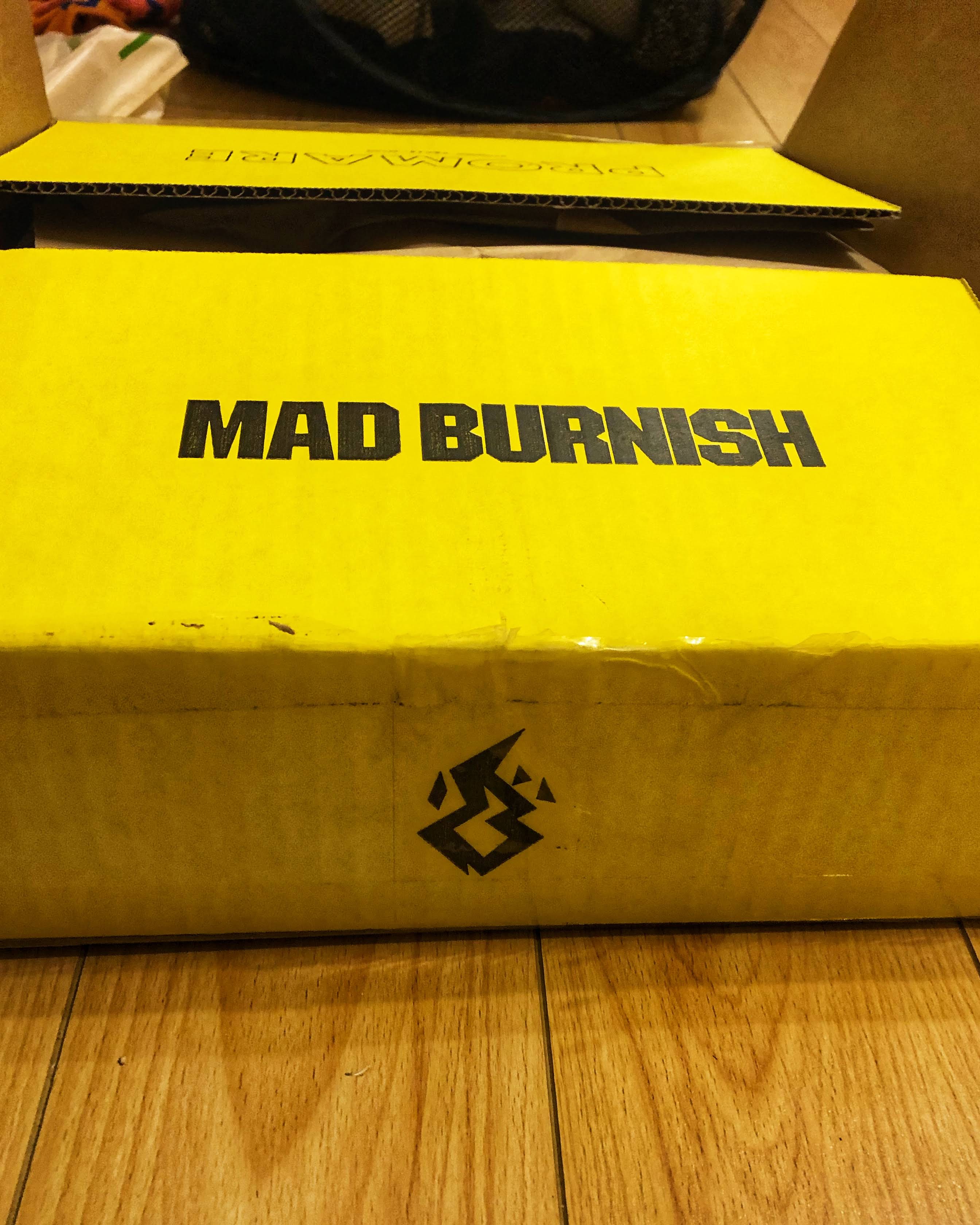 其實本來想要入手帽T特典(比較實用),但猶豫了太久而錯過時機,最後購入的是ANIPLEX+版本。而這家的特典又分成三種:バーニングレスキュー(Burning Rescue)、フォーサイト財団(Foresight Foundation)和マッドバーニッシュ(Mad Burnish),毫不猶豫地選了最後者!收到包裹後有點驚訝包裝用的紙箱也是配合特典的版本,這樣會捨不得丟欸XD